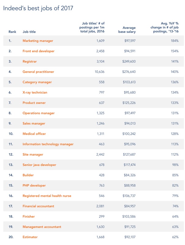 Dưới đây là 20 công việc tốt nhất theo báo cáo của Indeed: